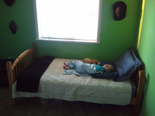 and Jaxon now sleeps in great comfort...sprawled across the bed!